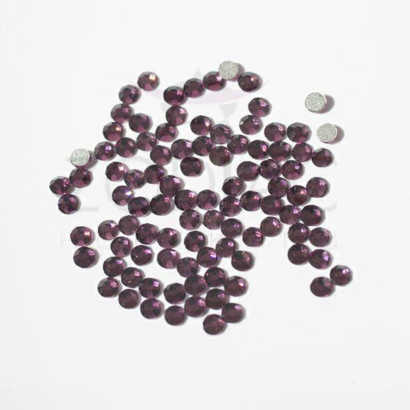 Ametiszt sötét lila színű üveg strasszkő. Mint ásvány a tisztánlátás, józanság és értelem köve melyet amulettként is hordtak, neve női névként is használható. Elegánsan bársonyos színével kíváló strassz dekoráció.