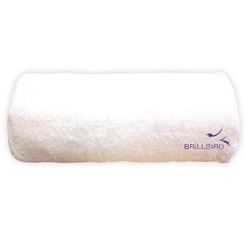 Munka közben megfelelő megtámasztást biztosító szivacsos kéztámasz fehér, frottír huzattal, hímzett BrillBird logóval a szalonmunka és a műkörmös oktatás igényeihez fejlesztett praktikus kivitelben, kedvező áron!