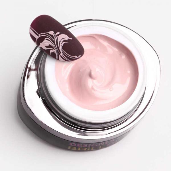 A Designer Gel zselé hihetetlenül pigmentált, sűrű és fixálásmentes. Szinte korlátlan ideig lehet vele dolgozni, nem folyik, nem mozdul el és már vékonyan is fed.