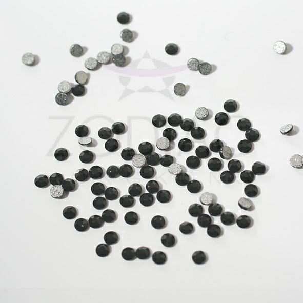 Jet, matt fekete színű Zodiac típusú ragasztható strasszkő. Kíváló minőségű, mattítása végett nem csillogó strasszkő, 8 fazettára csiszolva, aljukon ezüst fóliával ellátva.