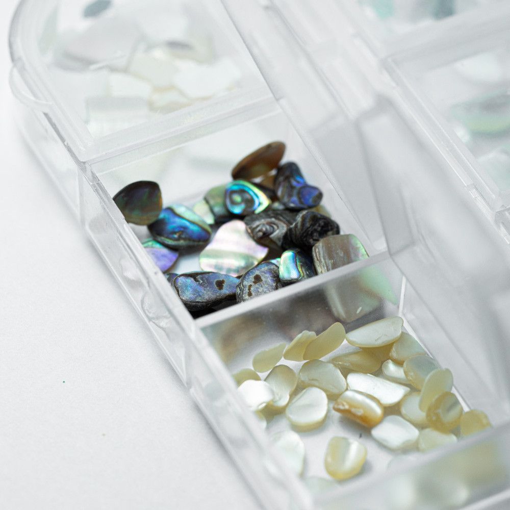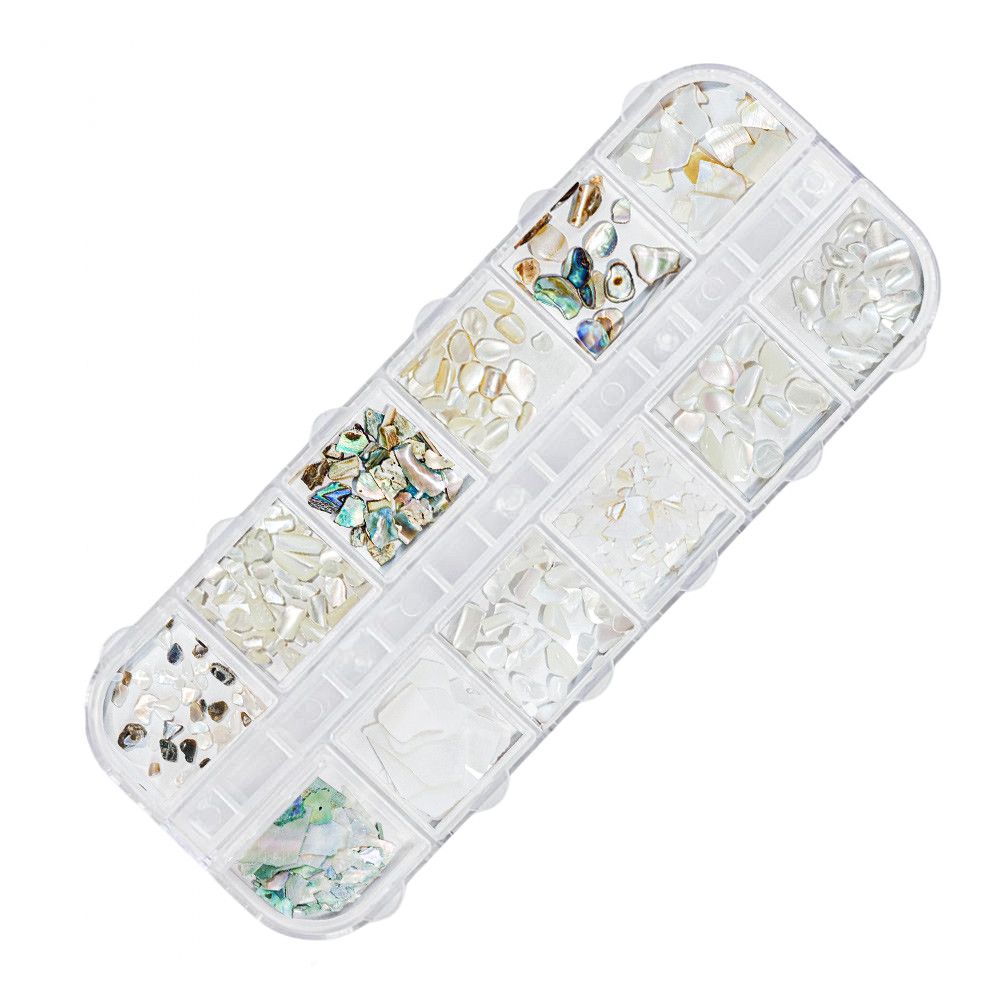 A tört kagyló díszek lenyűgöző csillogást és egyedi megjelenést kölcsönöznek bármilyen manikűrnek. A szett 12 különböző méretű, formájú és árnyalatú díszt tartalmaz, így könnyedén megalkothatod a saját stílusodat.