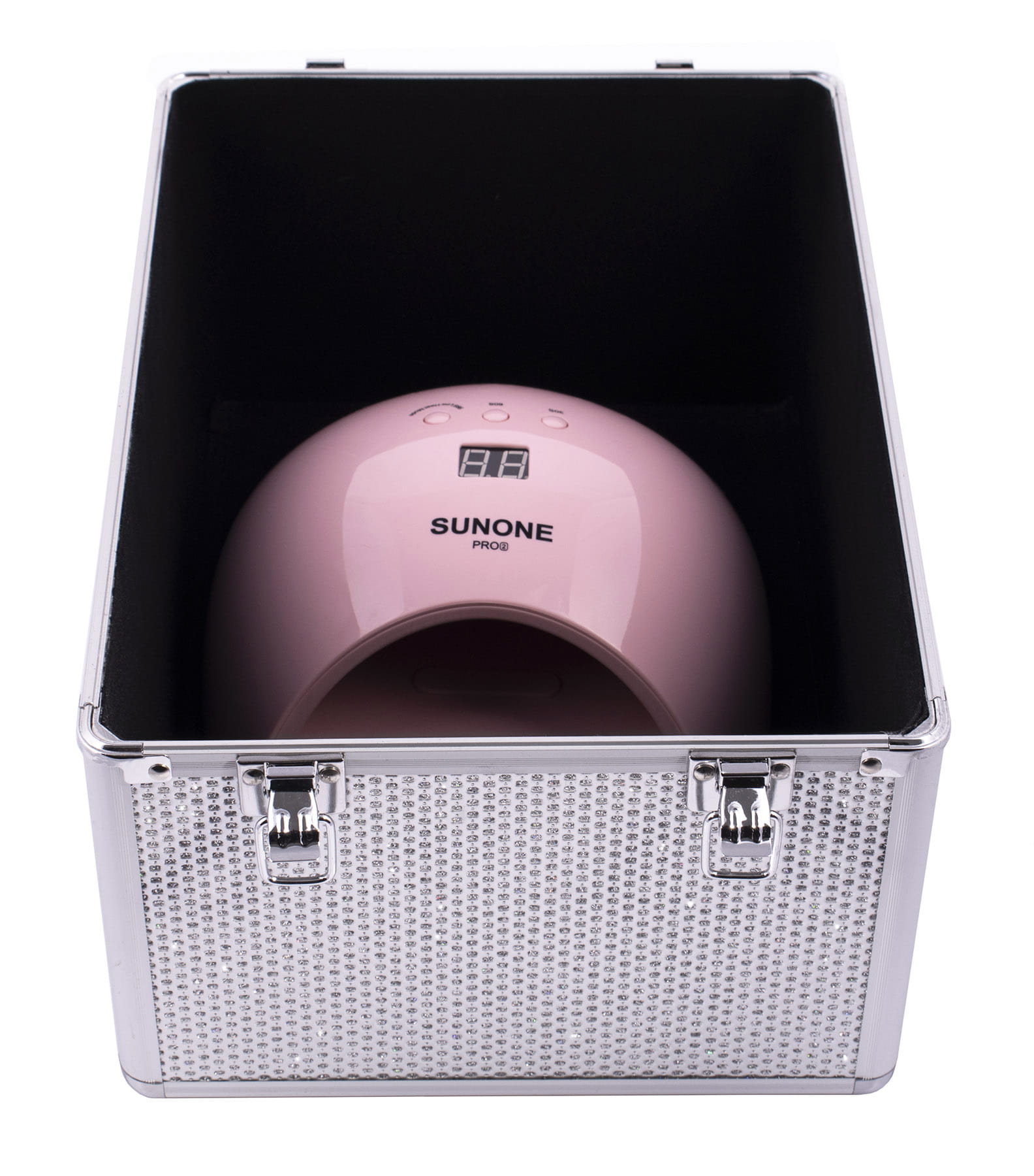 A felső rész két kétszintes polccal van felszerelve a lakkok és egyéb apró kiegészítők számára, plussz tartalmaz egy szivacsot 27 darab lyukkal, aminek köszönhetően gél lakkjaidat vagy bármiylen fajta ragasztó zselét, fedőfényt, előkészítő folyadékot is biztonságosan tárolhatsz. A felső polcok 3 cm magasak, de a szabad hely miatt könnyen elférnek rajtuk akár 7 cm magas lakkok is. Az alsó rész kényelmes és tágas a legtöbb szabványos UV lámpa, csiszológép és egyéb kiegészítő számára. A belseje fekete velúrszerű anyaggal bélelt. A felső része két zárral van rögzítve, melyekhez kulcs tartozik a készletben, amivel rögzíthető.