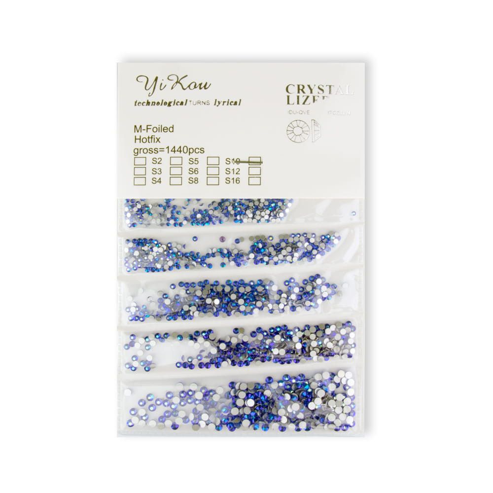 Strasszkő Selection Zircon Blue 1440db csomag a legnépszerűbb méreteket tartalmazza, vagyis az ss3, ss4, ss5, ss6, nagyságú strasszköveket, egymástól elkülönített fakkokban. Méretenként kb.: 360db.