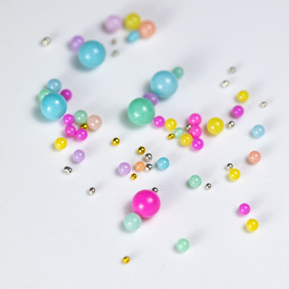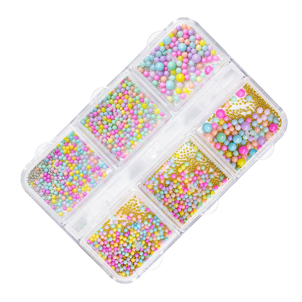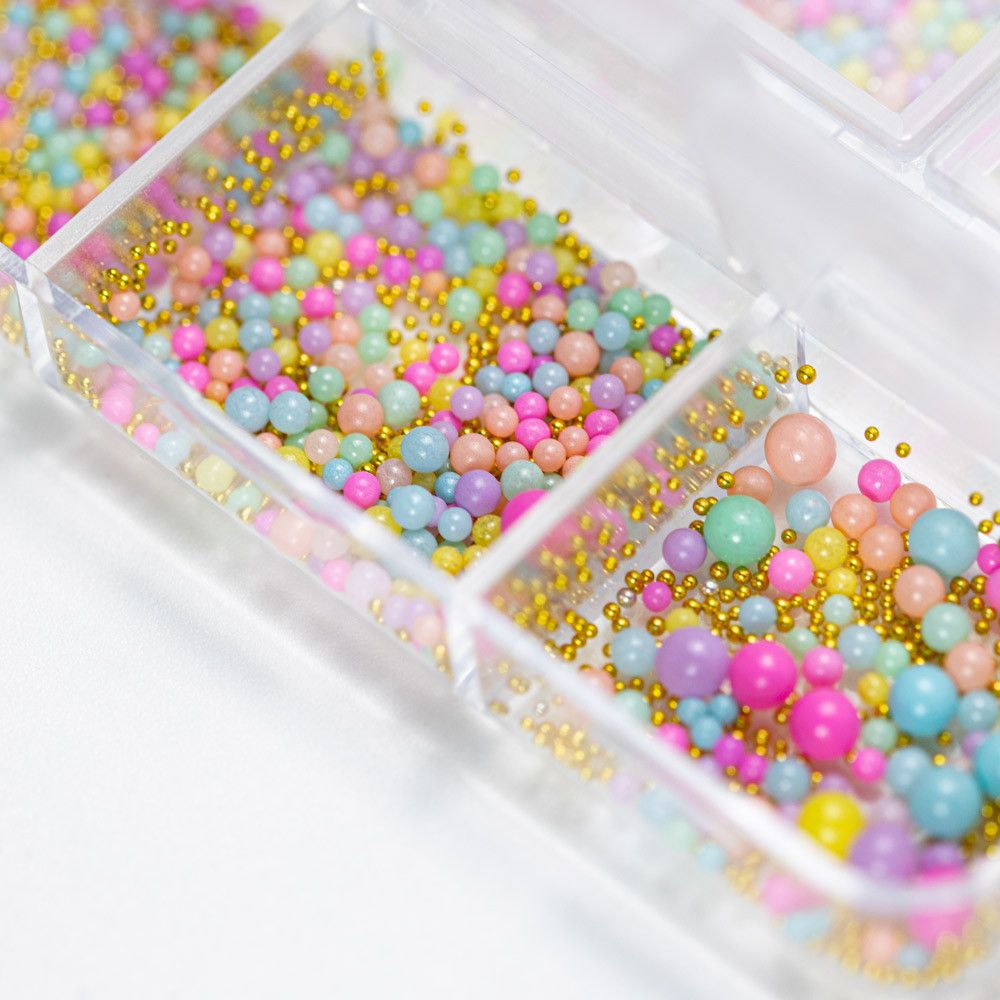 A praktikus tárolóban 6 különböző méretű, többszínű gyöngy található, amelyeket arany és ezüst fényű díszek egészítenek ki. Tökéletes választás, ha különleges, ragyogó körmöket szeretnél készíteni, amelyek garantáltan magukra vonzzák a tekinteteket! Ideális hétköznapi viselethez és alkalmi megjelenéshez is.