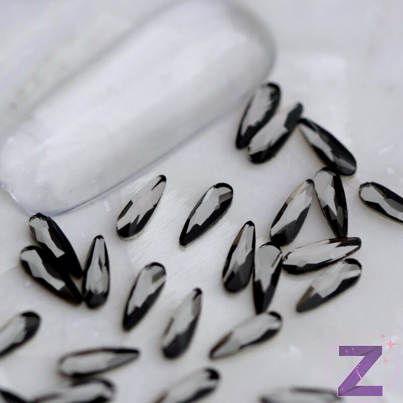 Csepp alakú formakő grafitfekete színben. Legkisebb cseppméret mely nagyszerűen kombinálható fekete színű formáinkkal és strasszköveinkkel.